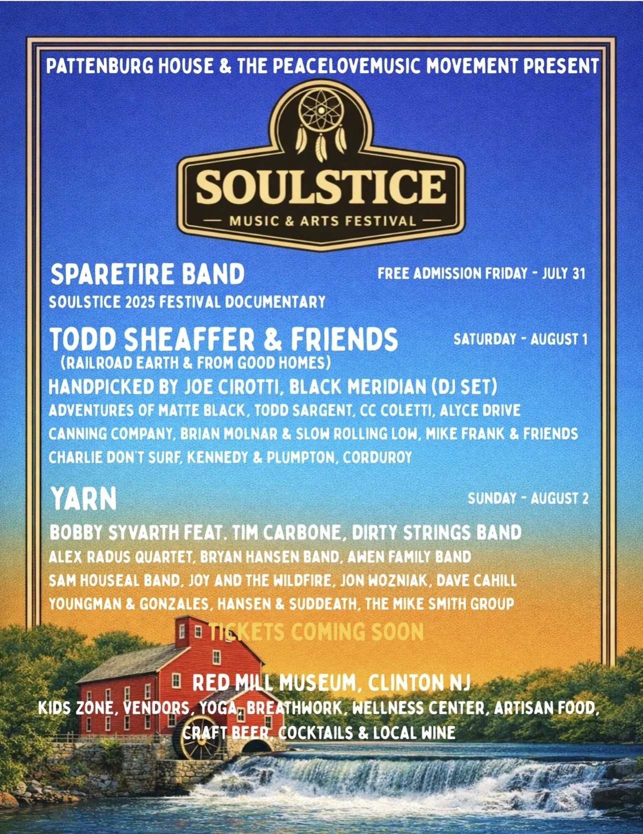 Our 2nd annual Soulstice Music, and Art Festival will be July 31-August 2nd at the Red Mill in Clinton Nj. Stay tuned for lineup, information, and tickets